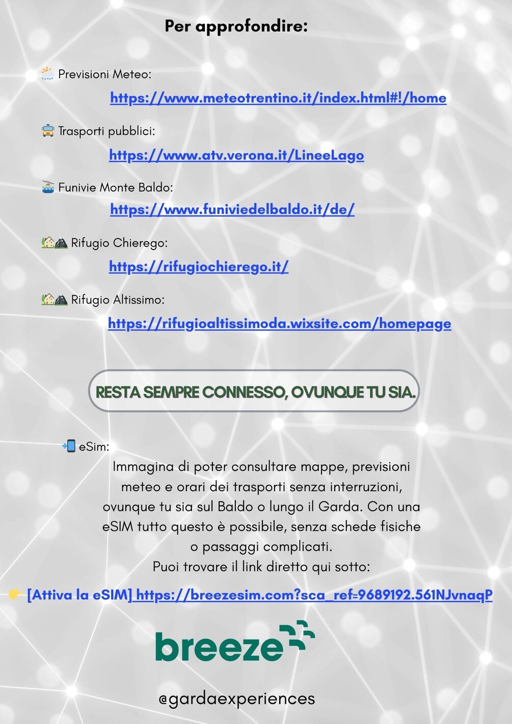 Questa guida digitale ti accompagna passo dopo passo lungo il trekking del Monte Baldo, con mappe, consigli e contenuti esclusivi pensati per rendere la tua esperienza sicura e indimenticabile.